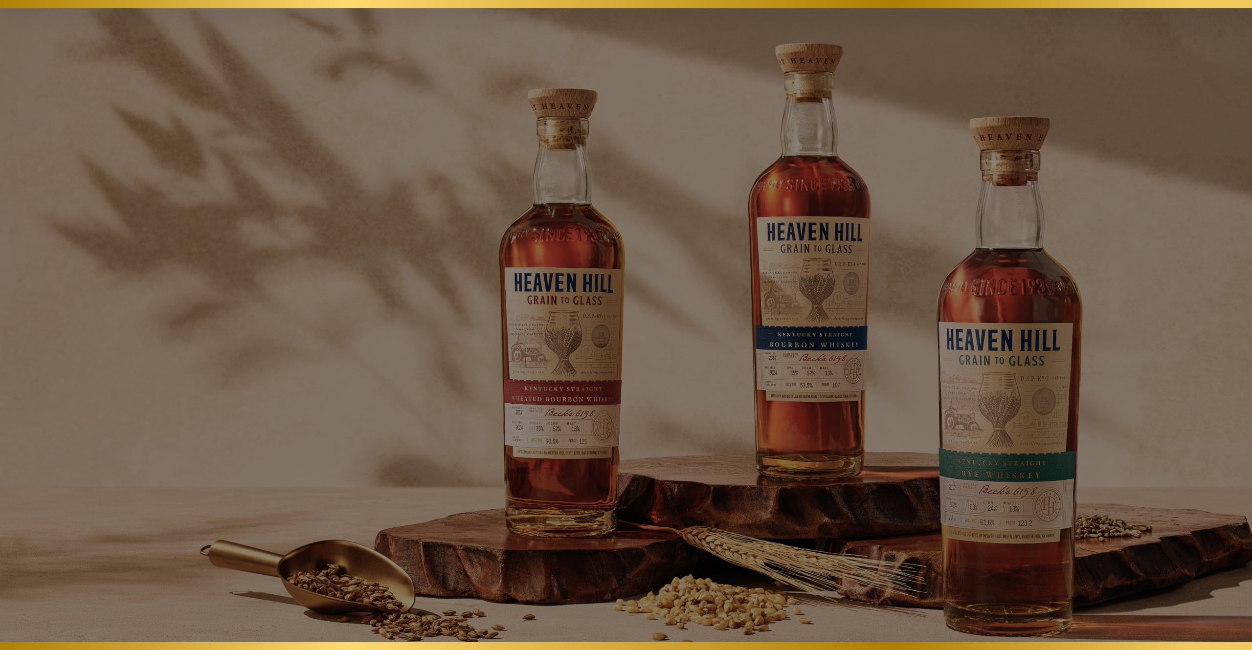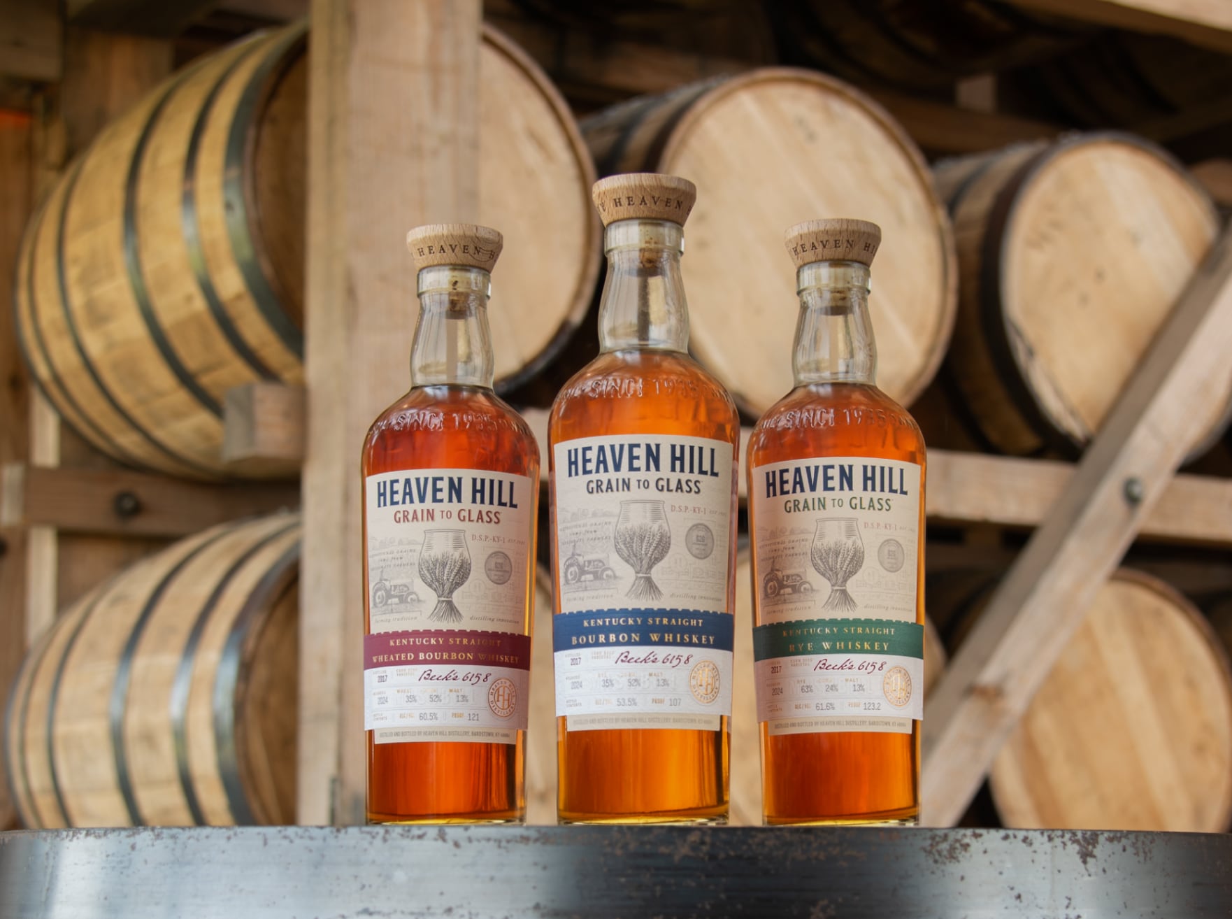 After the grain is harvested and distilled, it ages for at least six years in our rickhouses. It is then non-chill filtered, and for the second edition releases, bottled at barrel proof: highlighting the unique characteristics and flavors of the grain. The result is a truly premium product with a limited number of bottles produced each year. For our 2025 releases, the barrel entry proof for Heaven Hill Grain to Glass Whiskeys was 107. Historically, this was Heaven Hill Distillery’s traditional barrel entry proof, and it was important to us that we honor it in this new line of contemporary Whiskeys. Heaven Hill Grain to Glass is the result of many teams working together. From the farmers who plant and harvest the fields, to those who roll the barrels into each rickhouse, countless people are involved in bringing these expressions to life. Their spirit and passion shine through in every last drop.